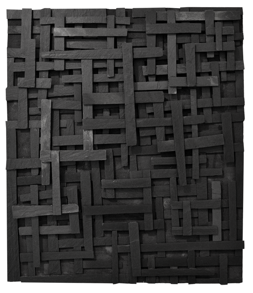 ardoise, colle carrelage, peinture acrylique, 60x64, 2023